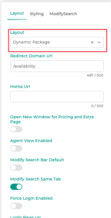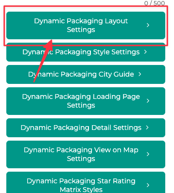 6. Scroll down and select 'Dynamic Packaging' Layout Settings - (to change the default set up, you will need to follow the steps below for each search type)