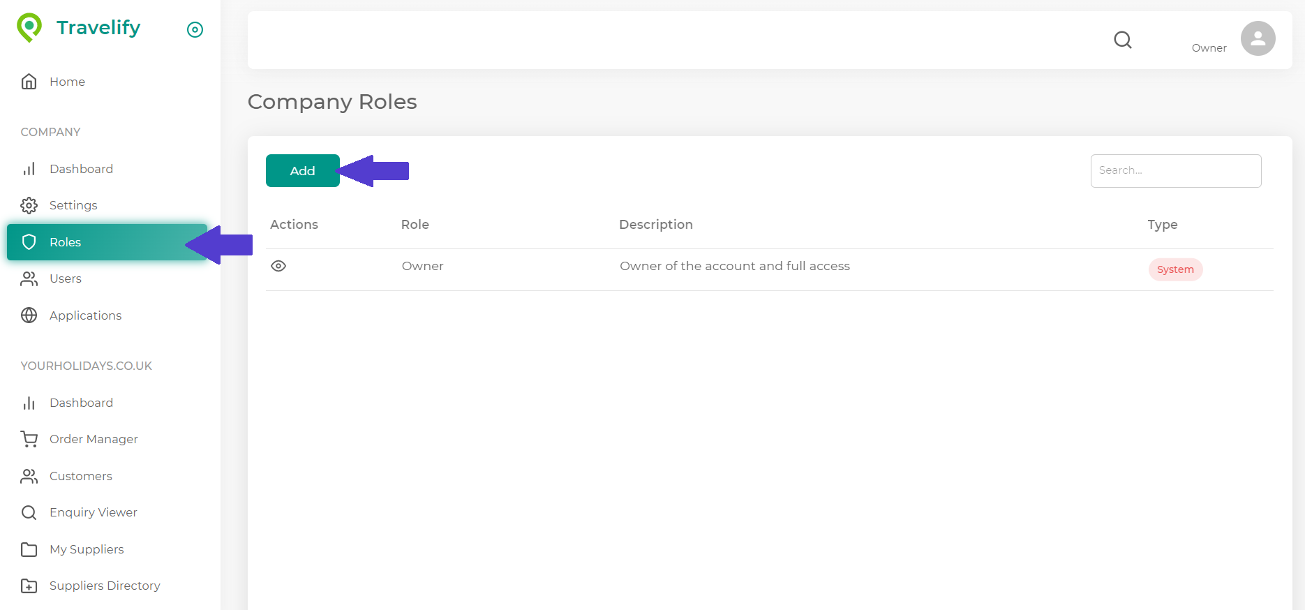 Travelify > Roles > Add