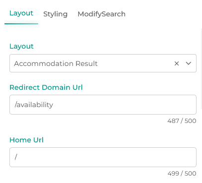 Important widget settings: you must ensure that you have set the Url to your availability/extras page in the widget settings (under Layout). We recommend setting the relative Url to the page rather than the full domain (eg. /availability) as below example. You can also set the Url to your homepage in the other field.