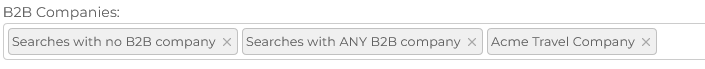Specific B2B company/companies: As you add companies in the section above, you will see them appear in this dropdown. You can then select individual companies to apply the rule to. If you choose this way of working, you will need to remember that when you add a new company, you will need to add them into the rules you want, which is why we recommend the "Any B2B company" option.