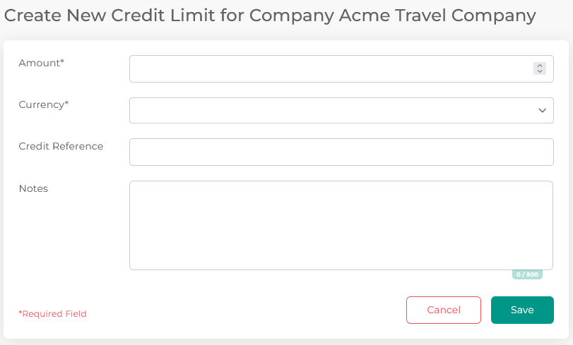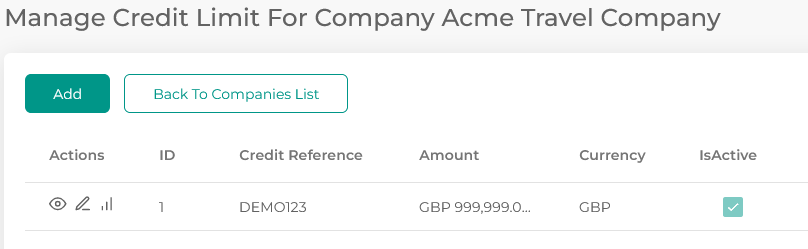 Click on the card icon next to the company. To create a new credit limit, click the "Add" button.