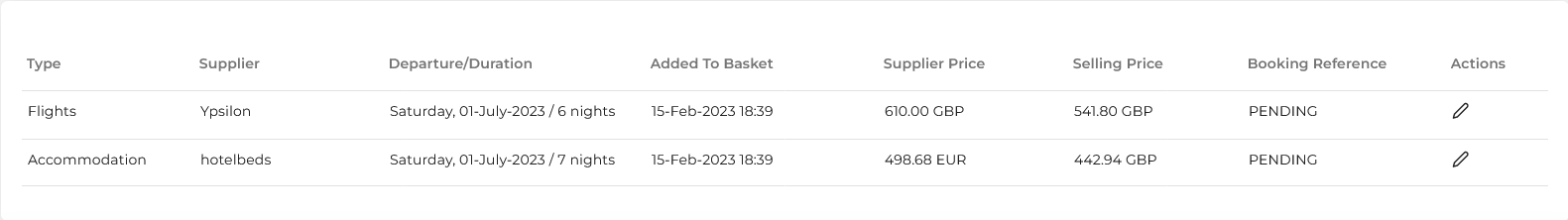 - Status - similar to the overall order status above, you can update the individual item status. IMPORTANT: This just changes the status on our side, it does not cancel the booking with your suppliers.