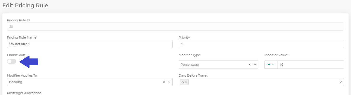 - Passenger Allocation - Apply this rule to specific passenger combinations (Useful for two adults, two children combinations). Leaving this option blank will apply to any passenger combination.