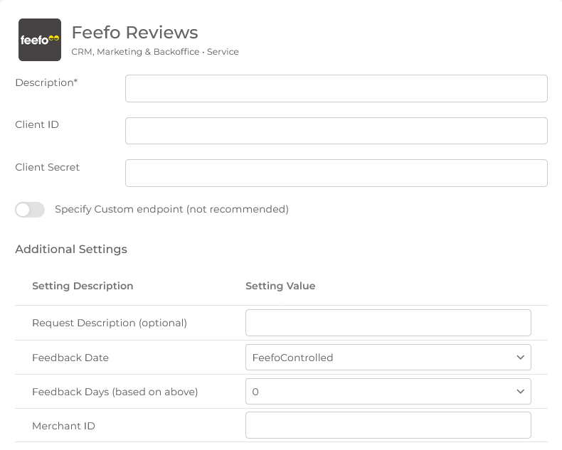 You will need a paid Feefo account to gain access to their API. Go to the Travelify Supplier Directory for your application and search for Feefo Reviews. You will see the below information that you need to connect the Travelify platform to your Feefo account (Client ID, Client Secret, Merchant ID) and, like Trustpilot, we will automatically push your order data to Feefo in real time when an order is placed on your website.